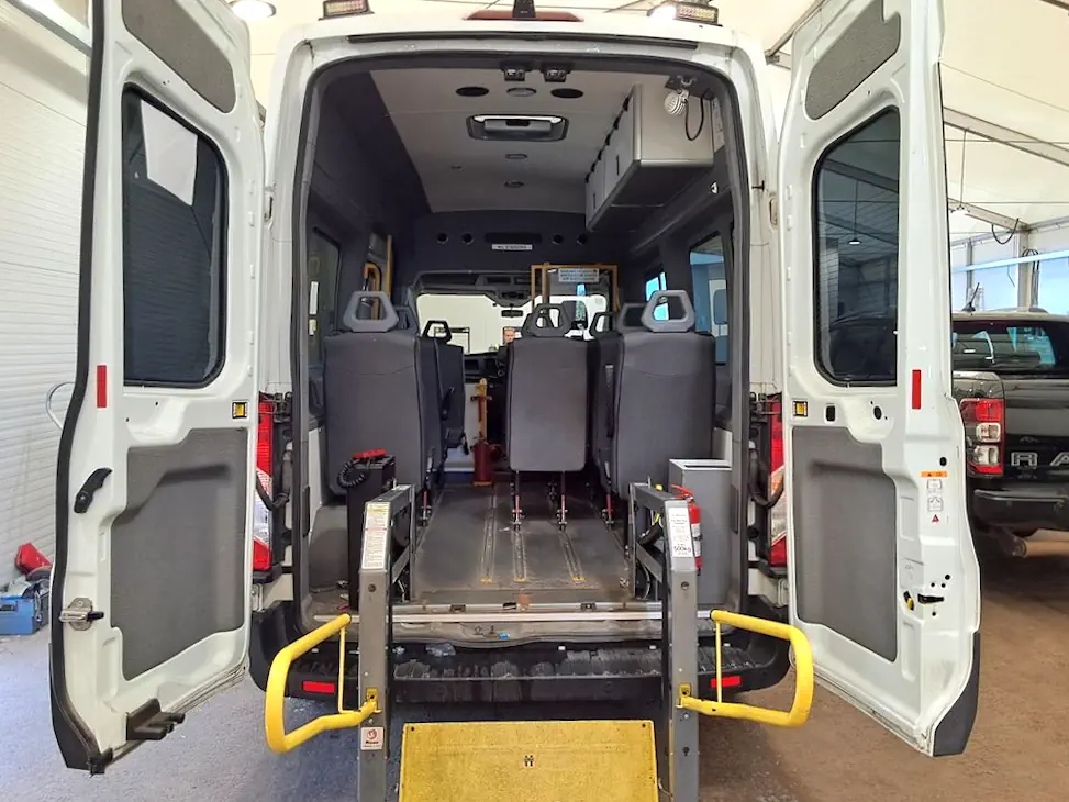 This N1-registered Ford Transit Wheelchair Accessible Minibus combines thoughtful design with practical flexibility. It features a rear electric wheelchair lift and space for up to 3 wheelchair users plus the driver, making it suitable for a wide range of needs.